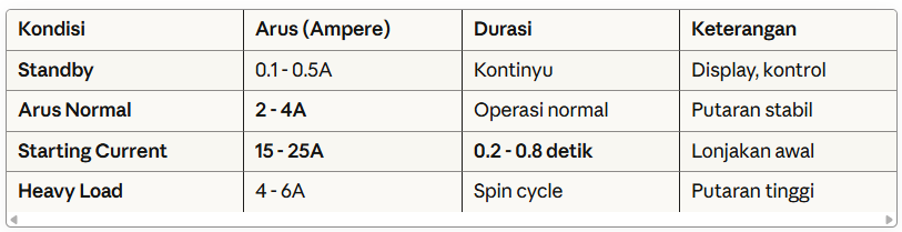 Starting Current Mesin Cuci: Kenapa Bisa 25A Padahal Arus Normal Cuma 2-3A?